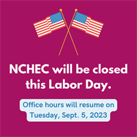 The NCHEC office will close at noon on Friday, September 1, 2023, and be closed on Monday, September 4, 2023, in observance of the Labor Day holiday.